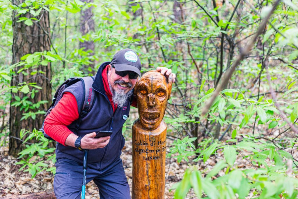 Passeggiata all’interno del Parco Pineta a Tradate. Abbiamo lasciato la macchina in un parcheggio in Via del Pracallo a Tradate ma abbiamo poi scoperto che in Via dei Ronchi, ingresso del Parco c’è un apposito parcheggio. Entrati nel Parco si percorre un’ampia strada che diventa poi sterrata ma ben battuta, che porta ad una casa molto particolare e pian piano entra all’interno dei boschi. La strada ci porta al sentiero dei proverbi, una piantagione artificiale di Pini strobi appartenente alla falegnameria Proverbio. La piantagione venne realizzata negli anni cinquanta dalla Cartiera Vita-Mayer. Il percorso prosegue su un facile sentiero che ci porta a una biforcazione dove, di fronte a noi si apre un enorme prato regno di diversi cavalli. Qui si può decidere di proseguire verso destra fino ad arrivare a un’altra proprietà, all’interno di un altro grande prato, molto suggestiva. Tornando sui propri passi si arriva nuovamente al prato dei cavalli e si prosegue dritto (o alla vostra sinistra se si salta la visita alla proprietà di cui sopra) e si prosegue per un sentiero completamente immerso nel bosco fino ad arrivare ad una deviazione che in breve tempo ci porta al sentiero natura dove sono presenti numerose sculture in legno raffiguranti gnomi e animali veramente ben realizzati e gioia dei bambini che visitano il parco. Si raggiungono così delle strutture del parco per poi arrivare nuovamente alla casa particolare di inizio strada e tornare al parcheggio. Nonostante i sentieri siano ampi e battuti si consigliano comunque scarpe da trekking, vista anche la possibilità di zone infangate nel bosco. Una curiosità: è accertata la presenza all’interno del parco, oltre che di fauna selvatica come cinghiali, cervi e caprioli, di un lupo che al momento sembra stanziale nei molti km quadrati del parco.